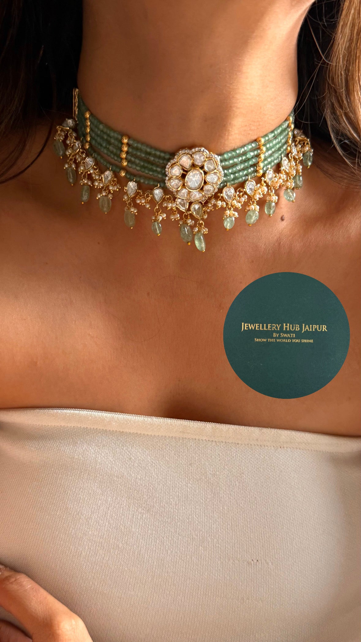 Real moissanite mint designer choker necklace set