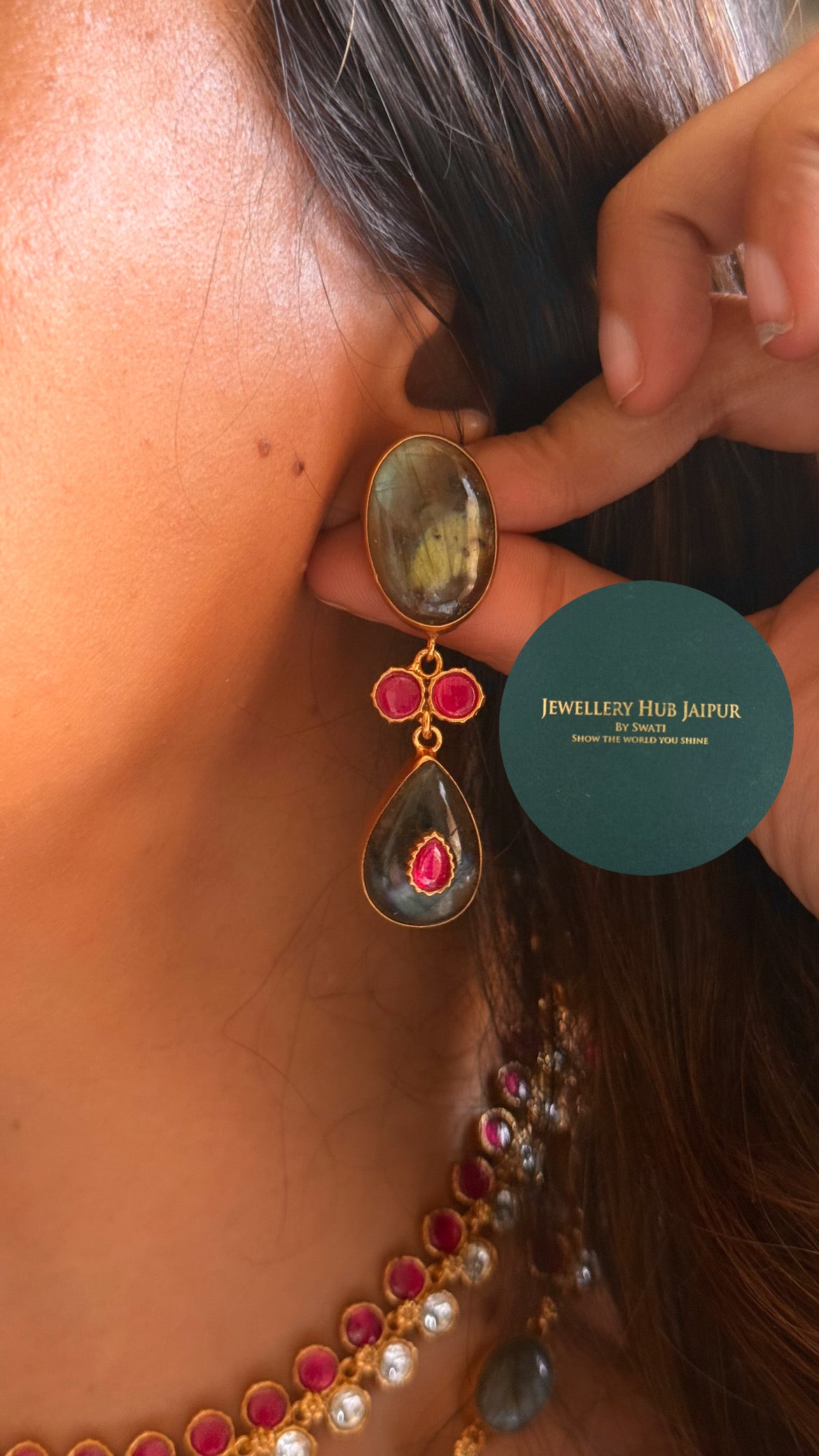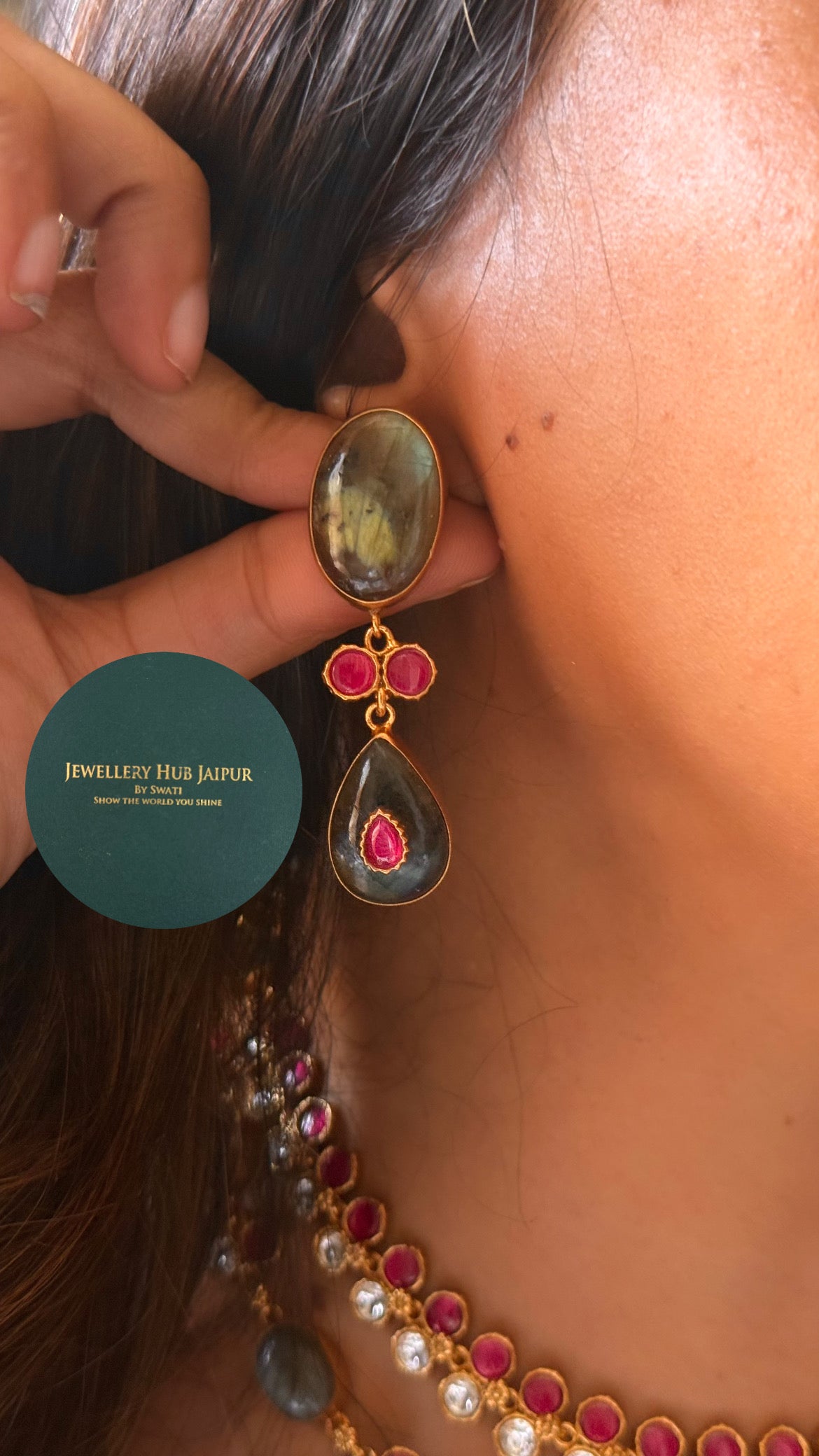 Amrapali inspired Natural stone rani pink moissanite dual layer collar set
