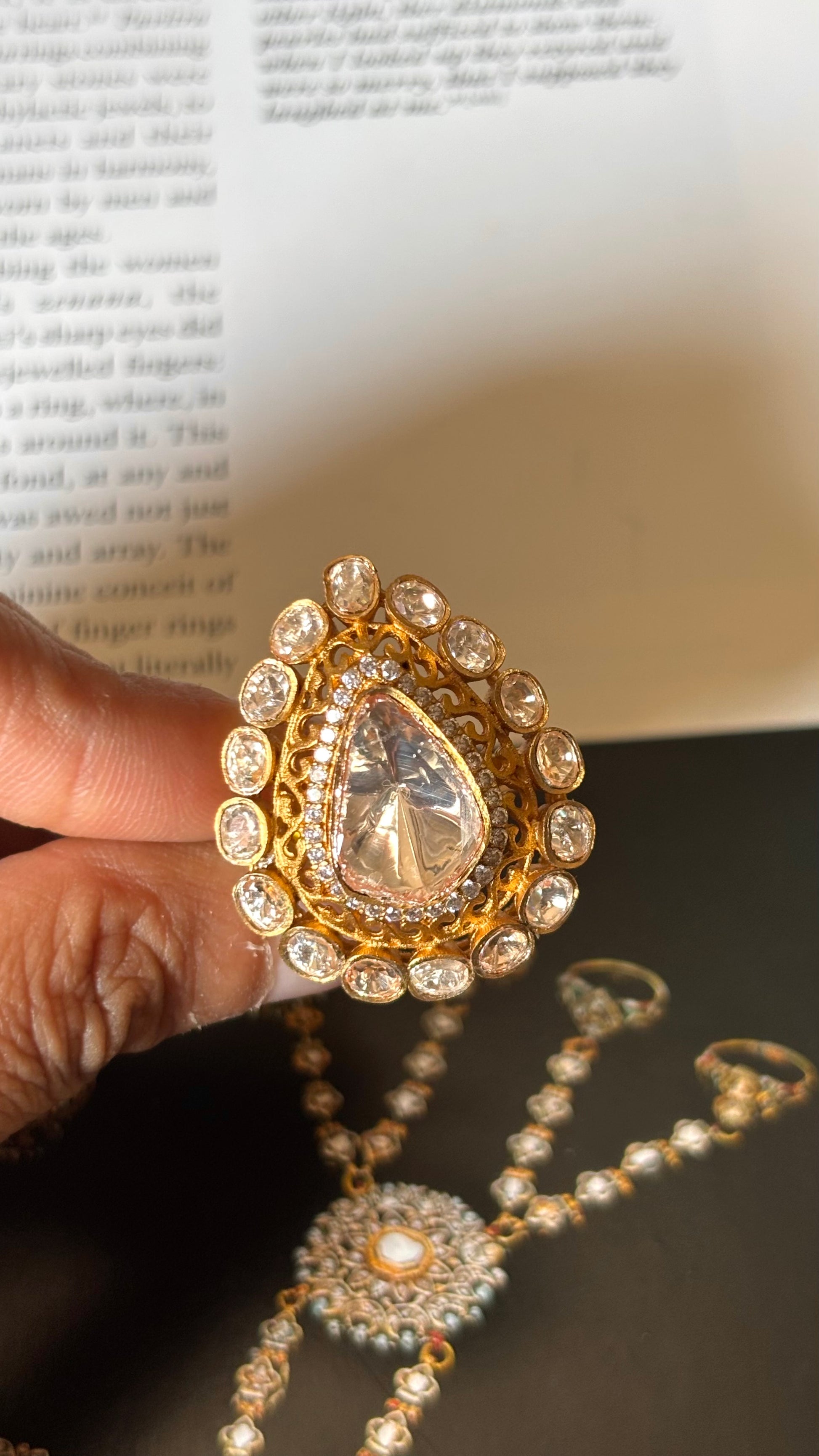 Tear drop peeli polki real moissanite Ring