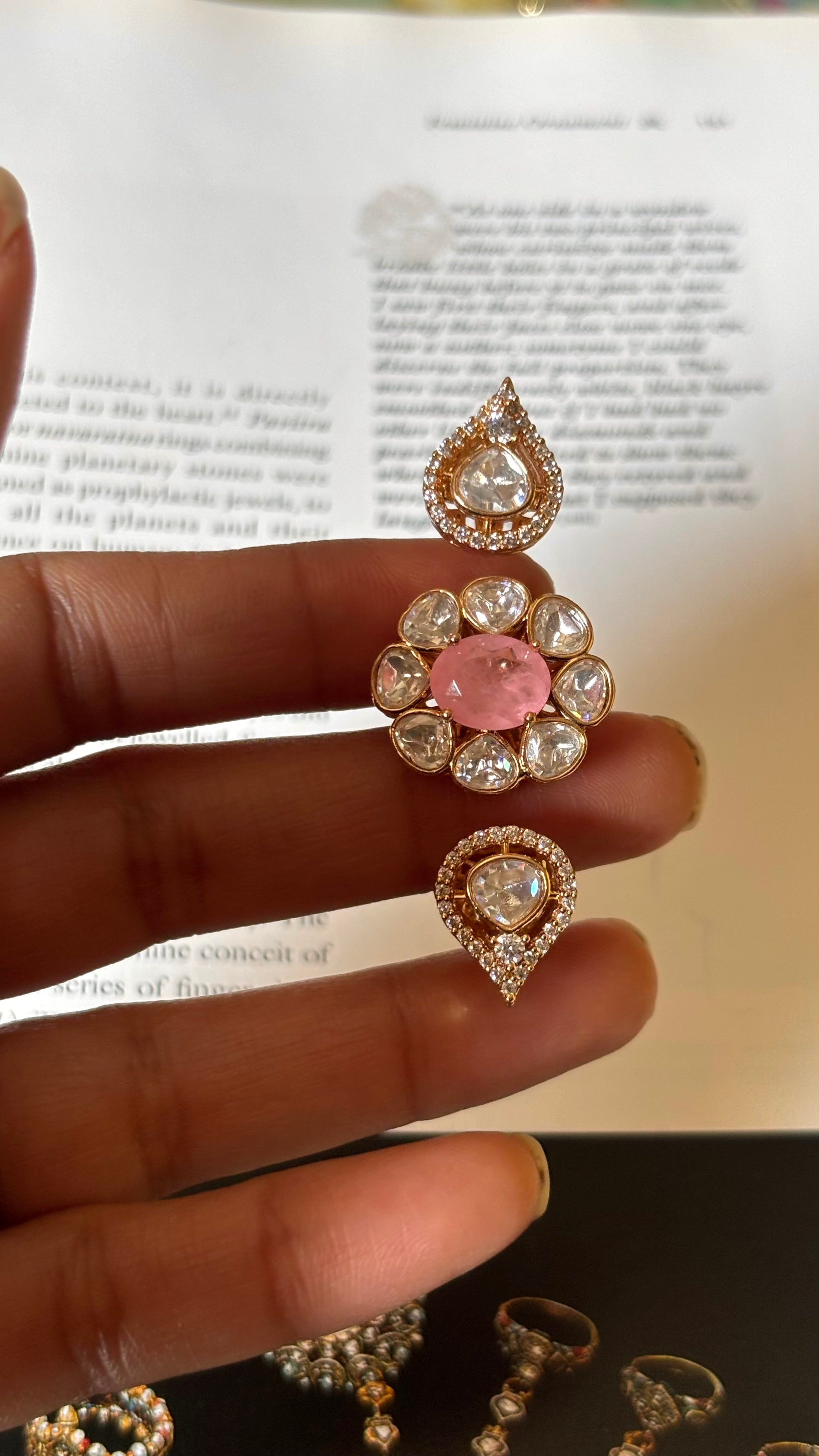Rose quartz moissanite polki double finger Ring