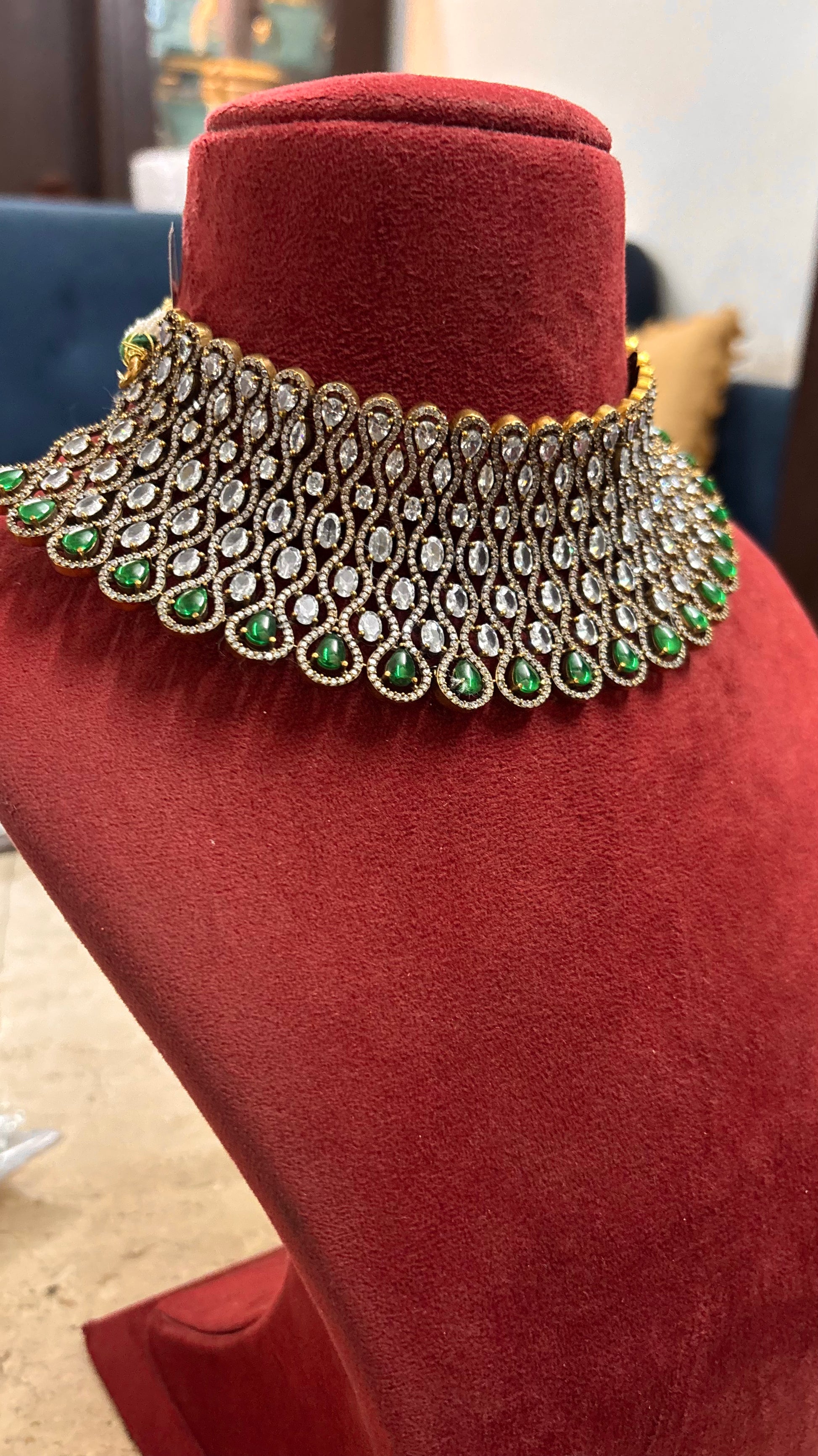 Risha emerald doublet and moissanite designer choker set