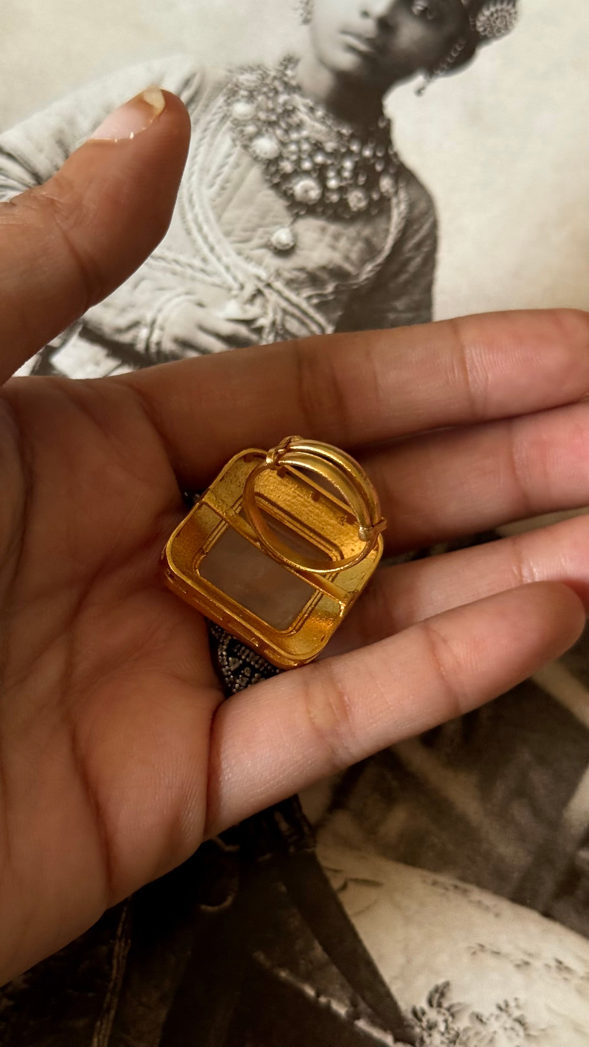 Rose quartz inlay work & rani pink katdana adjustable ring