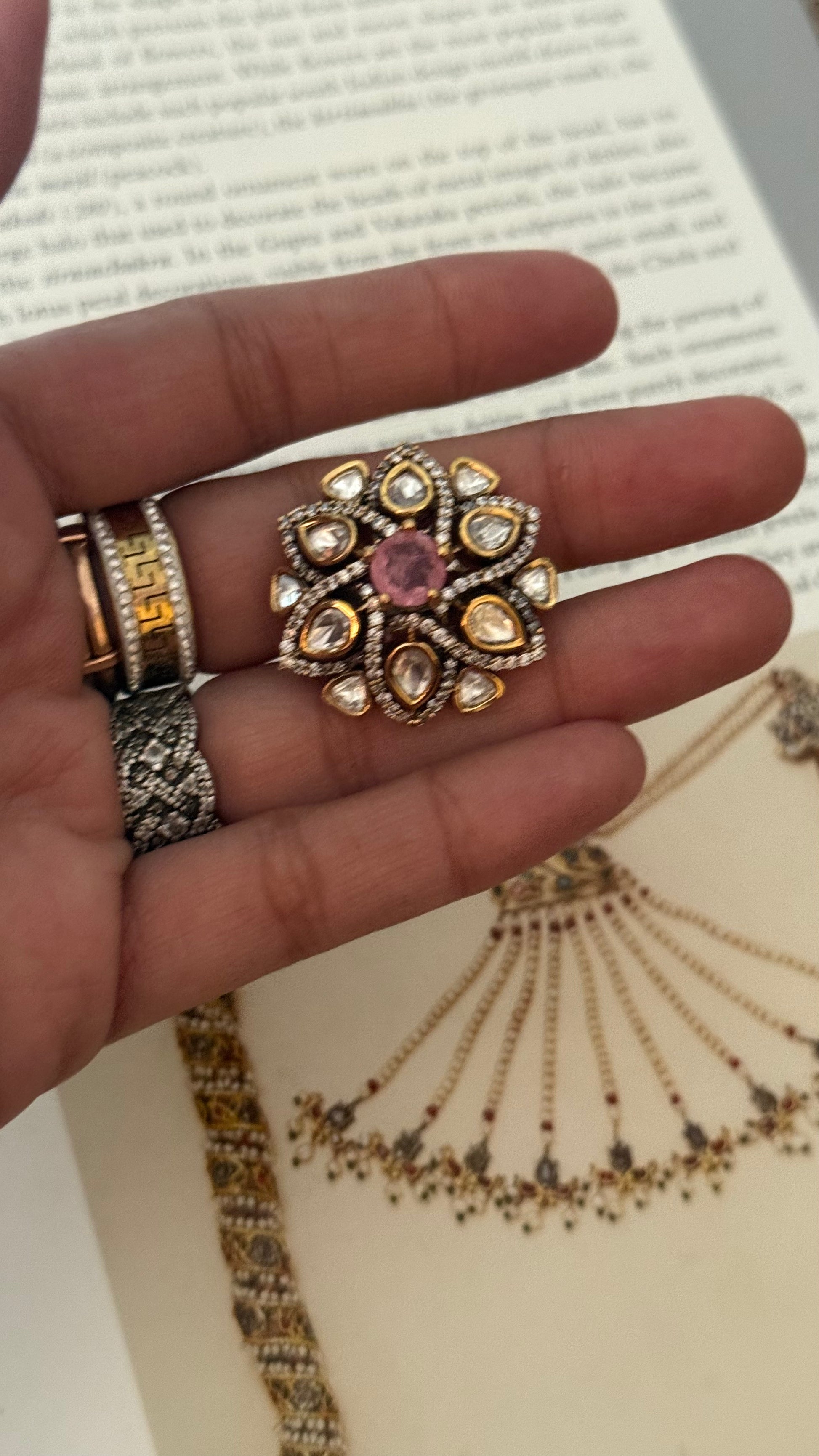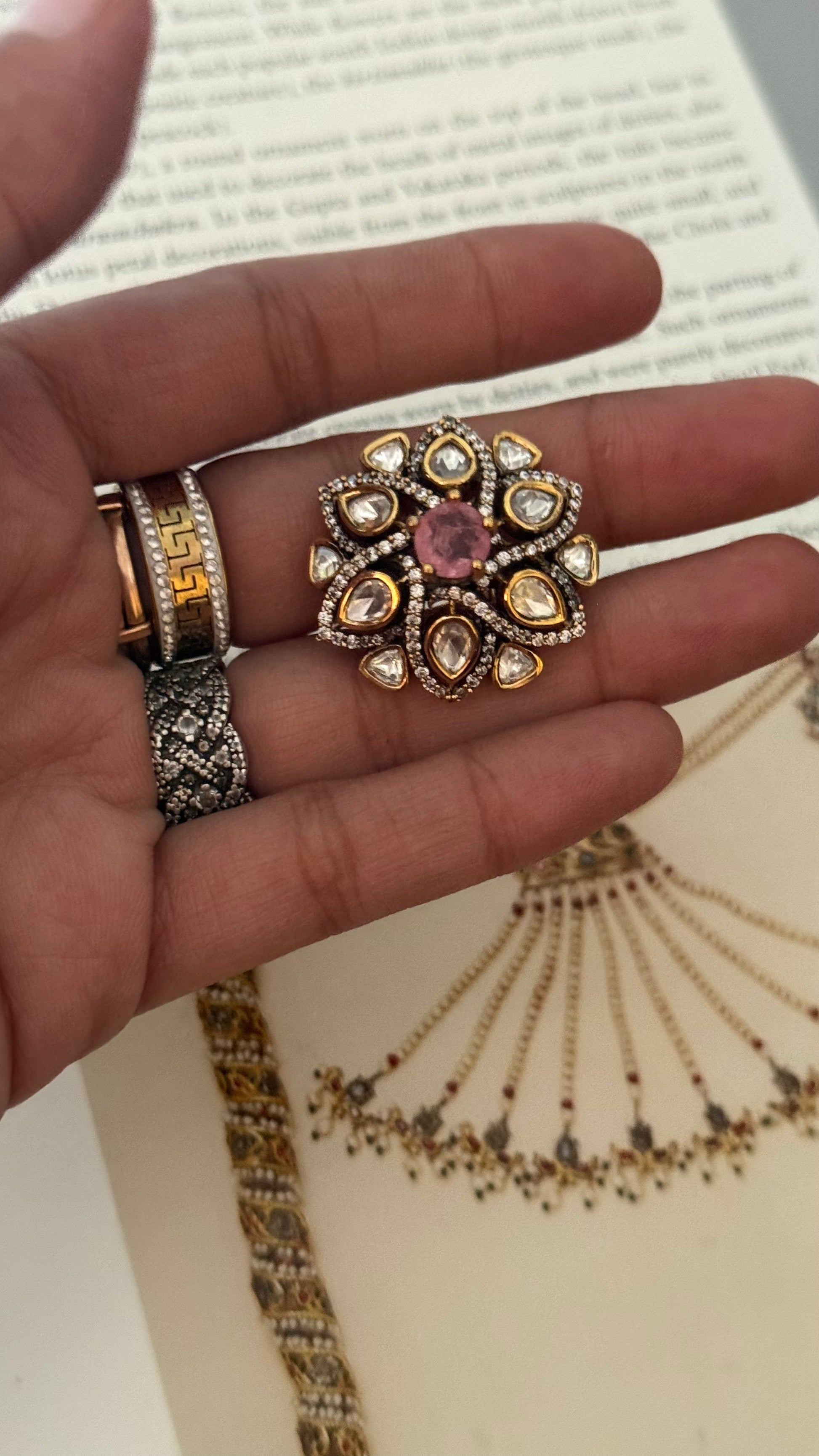 Rose quartz victorian ring