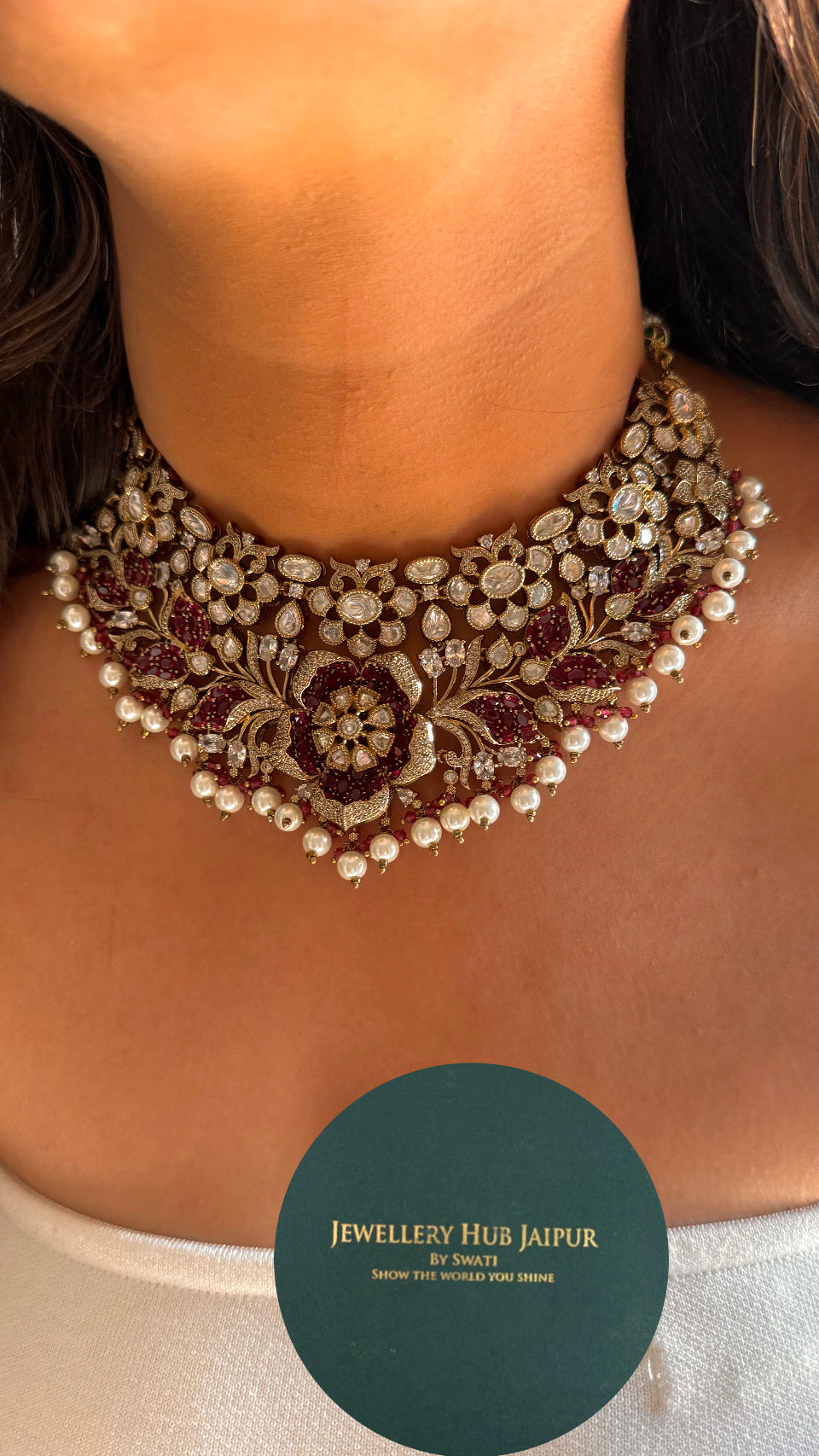 Ruby floral takkar work desigmer collar necklace