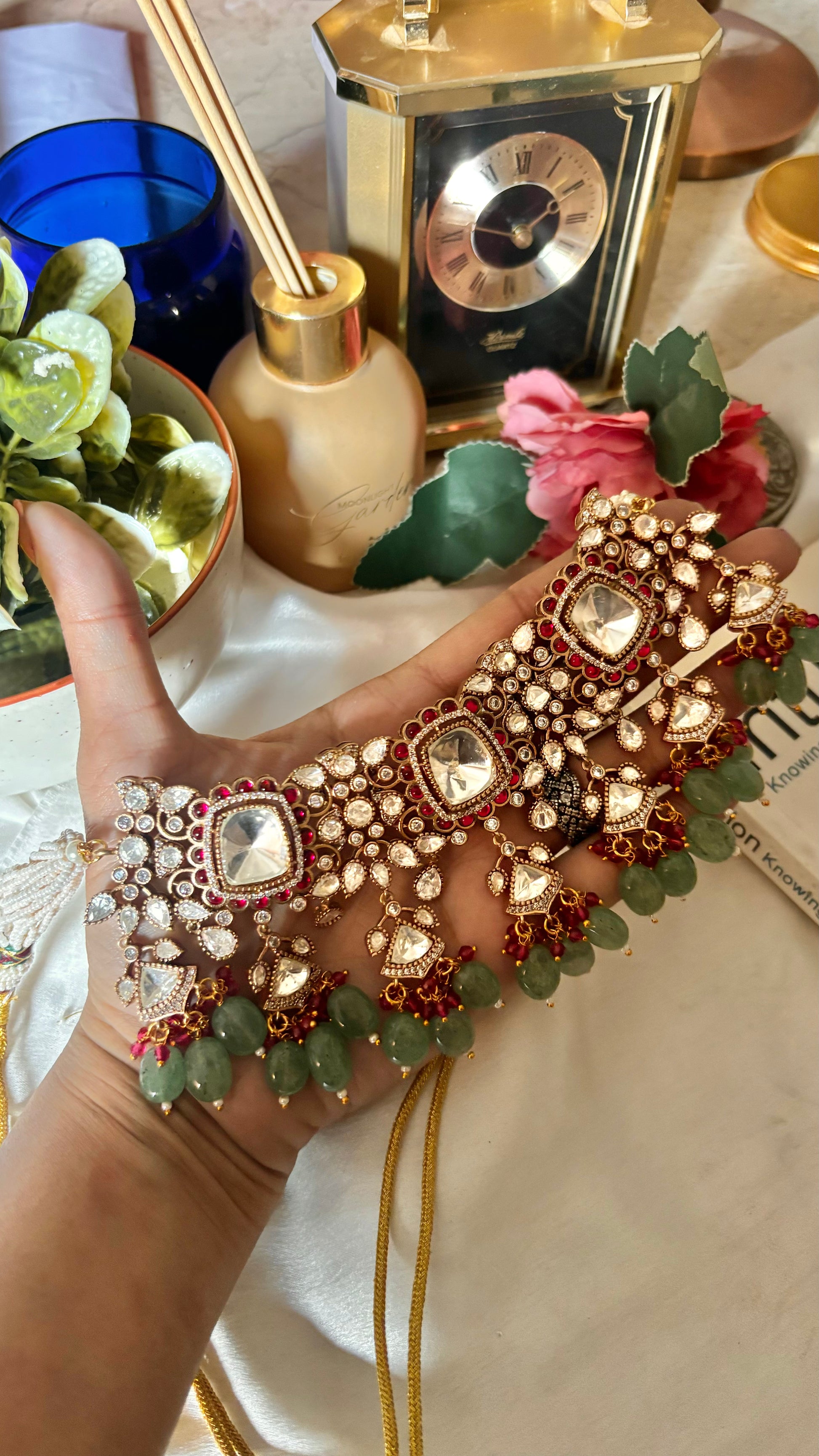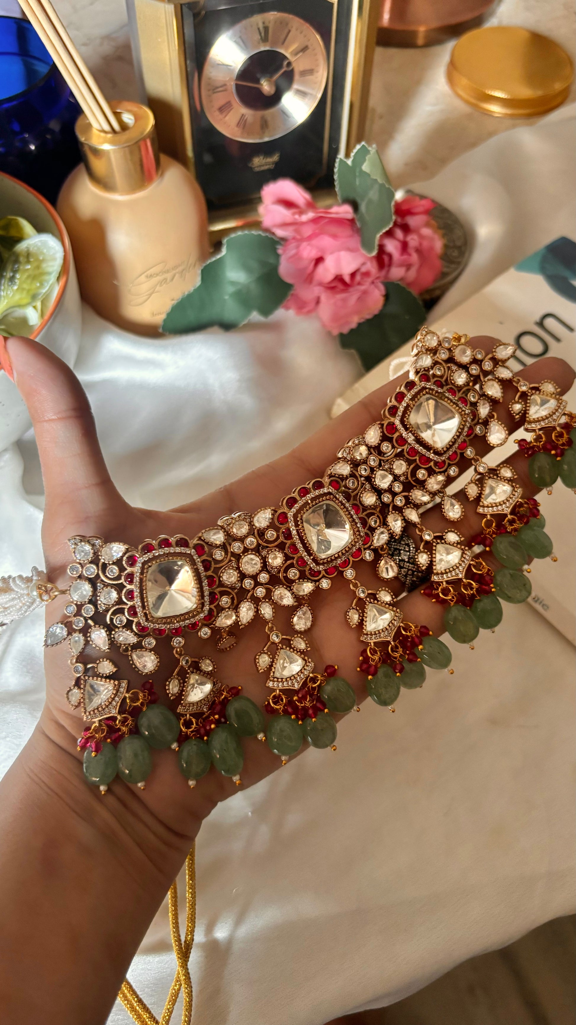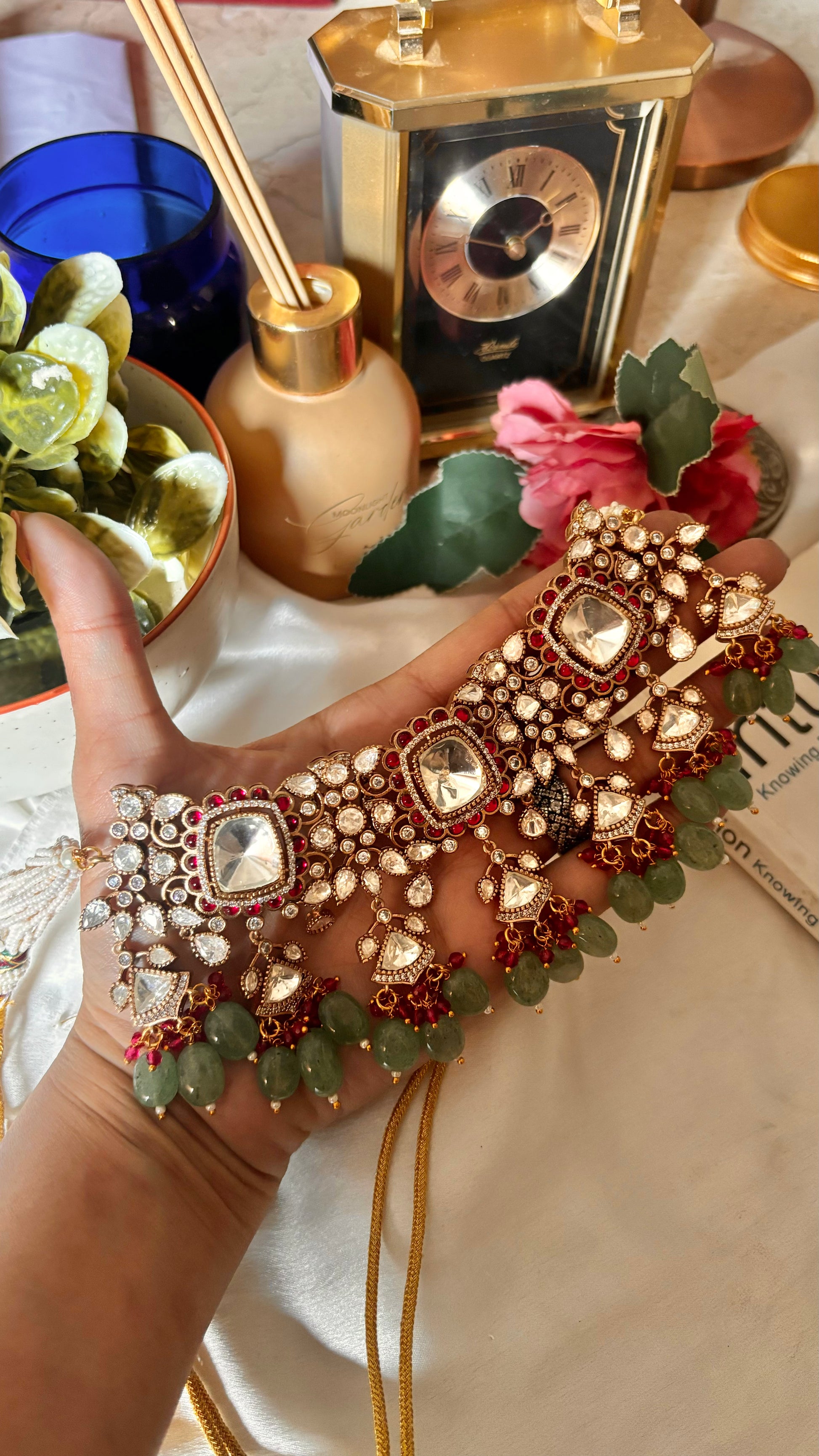 Bridal Asia Rani & mint moissanite uncut polki choker
