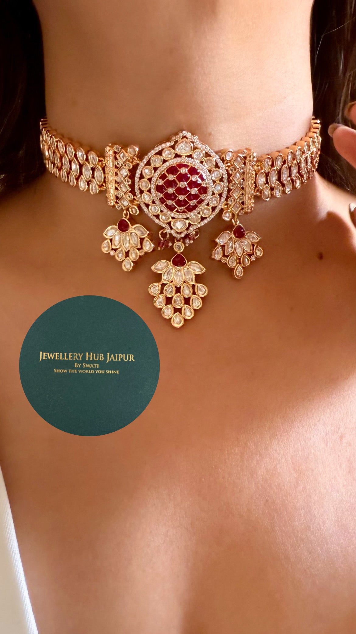Ruby moissanite polki choker set