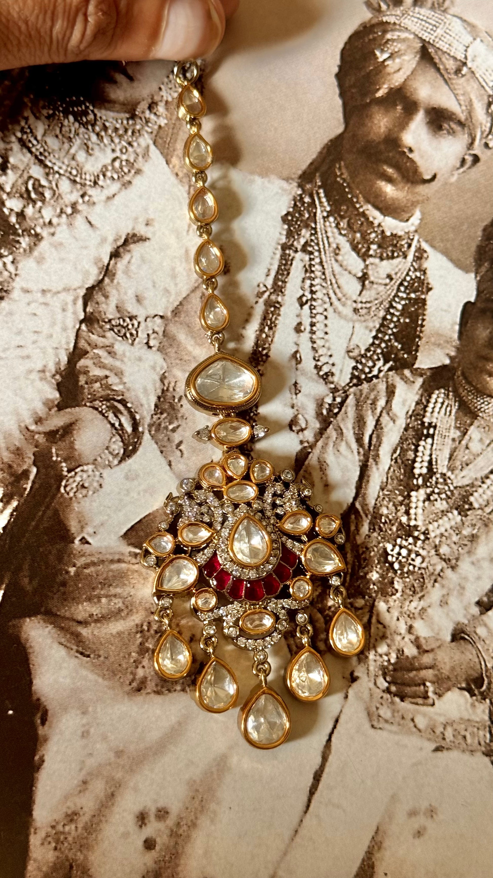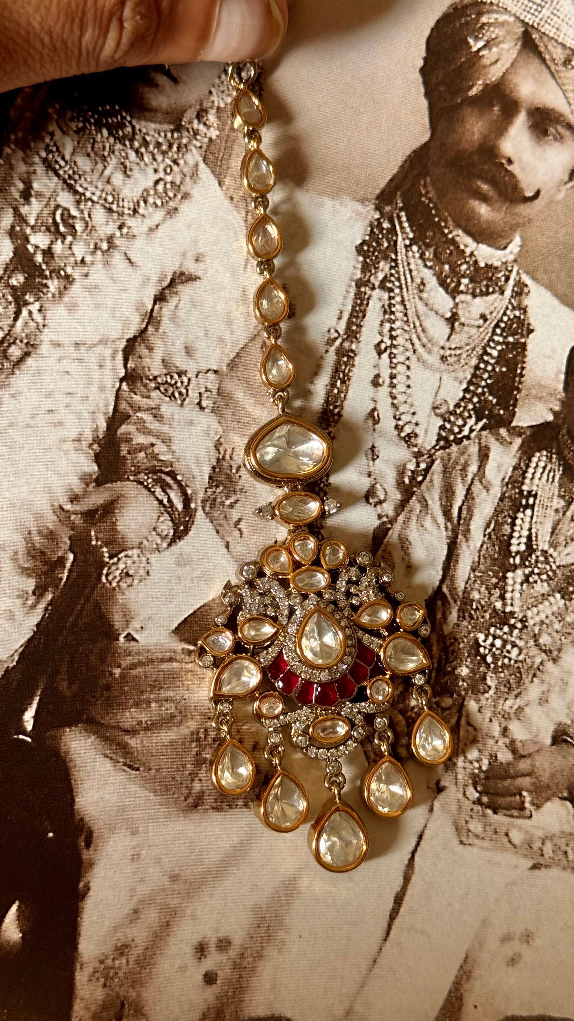 Ruby moissanite polki maangtika