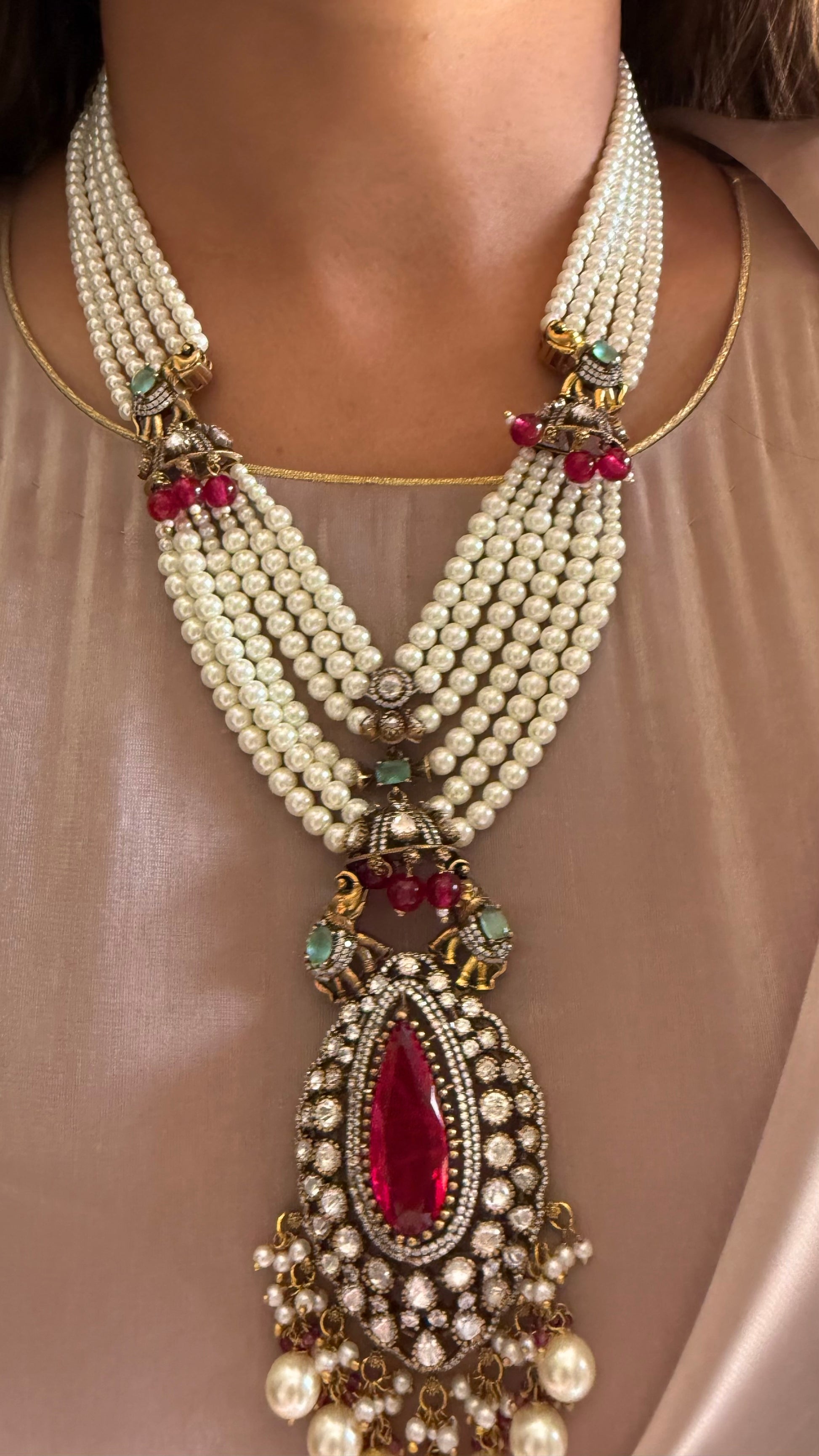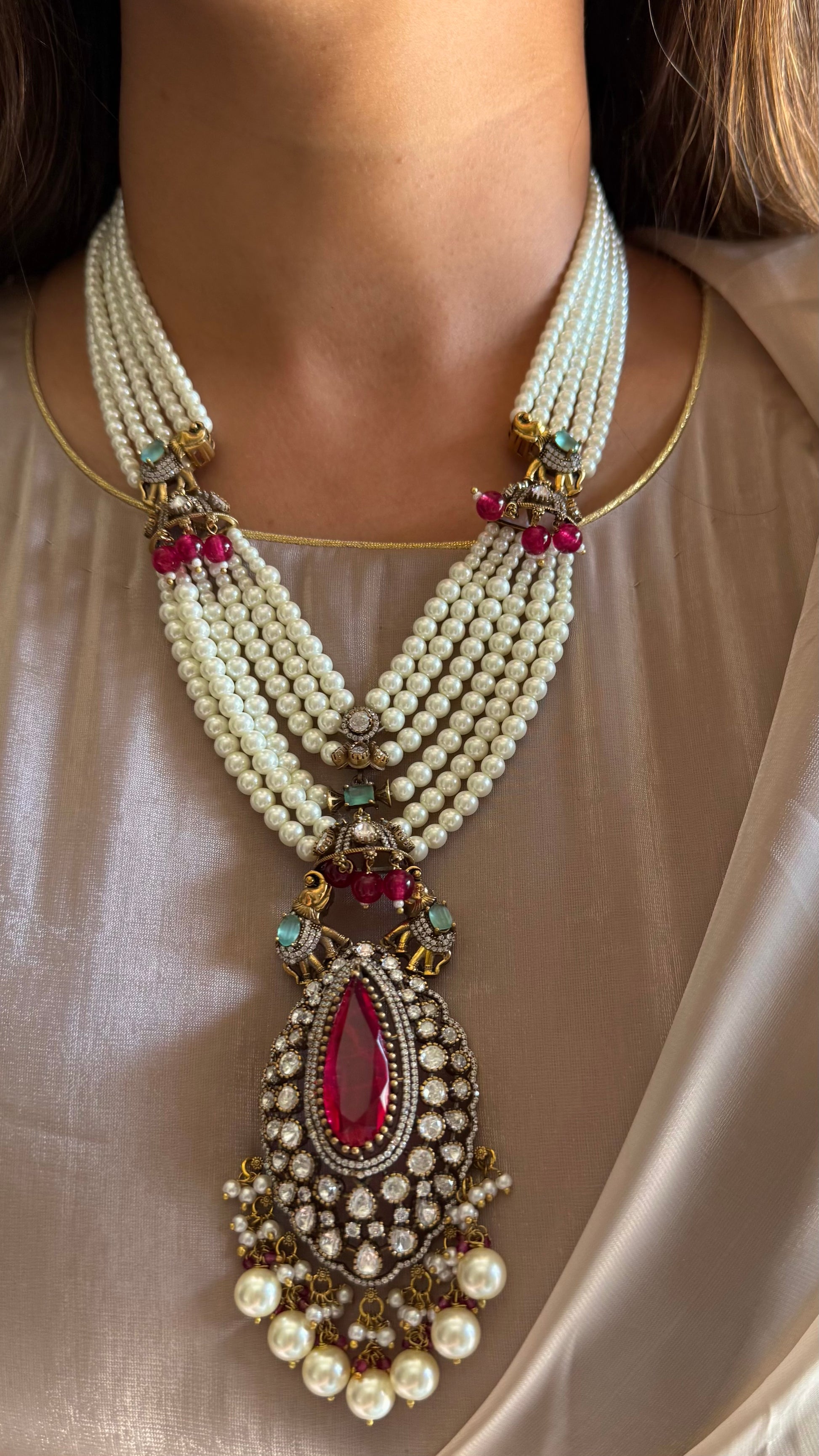 Ekisha Gajanand rani pink & emerald moissanite rani haar