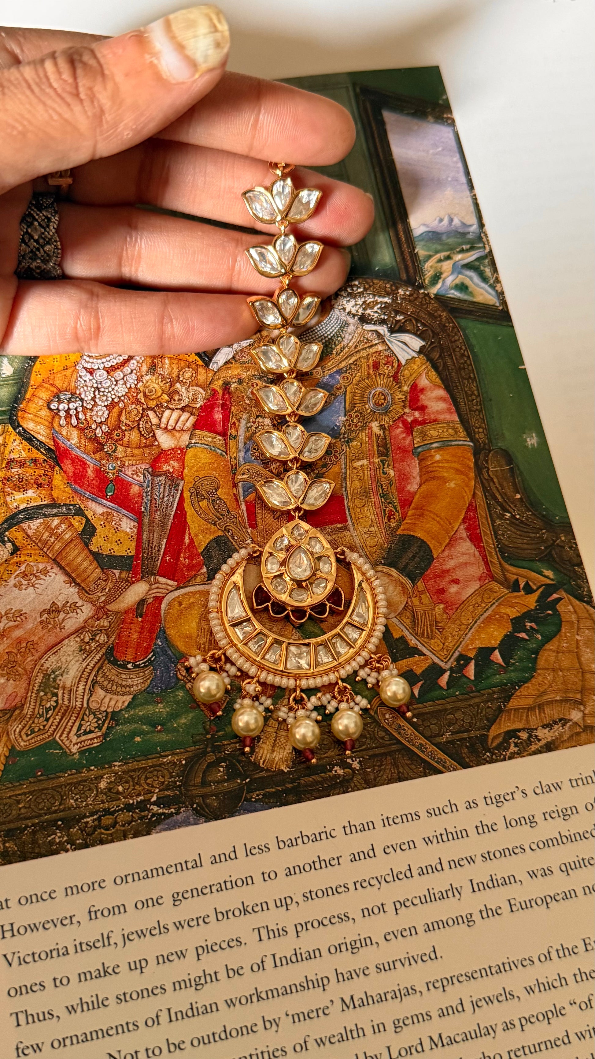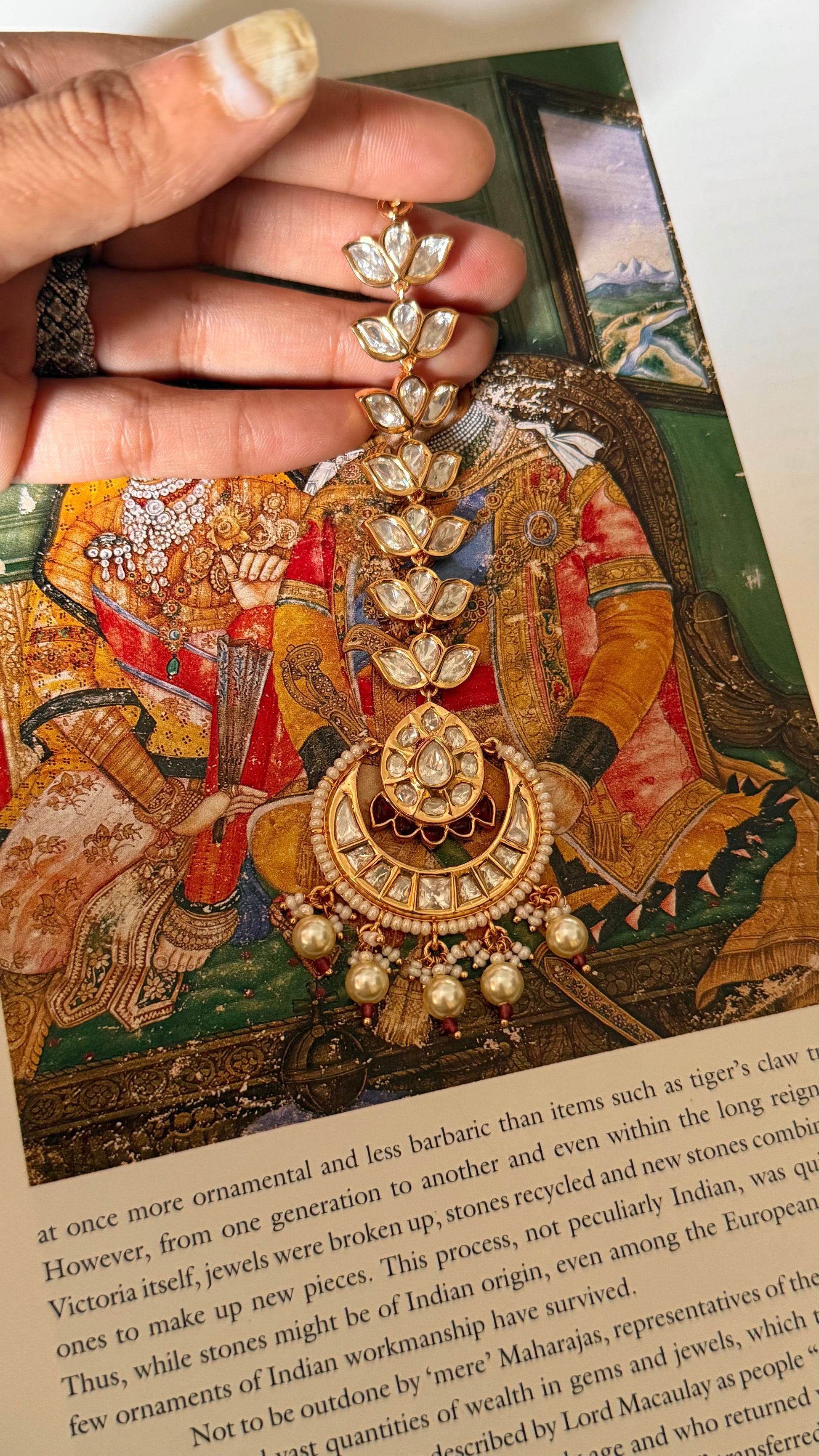 Ruby & polki with pearl drop maangtika