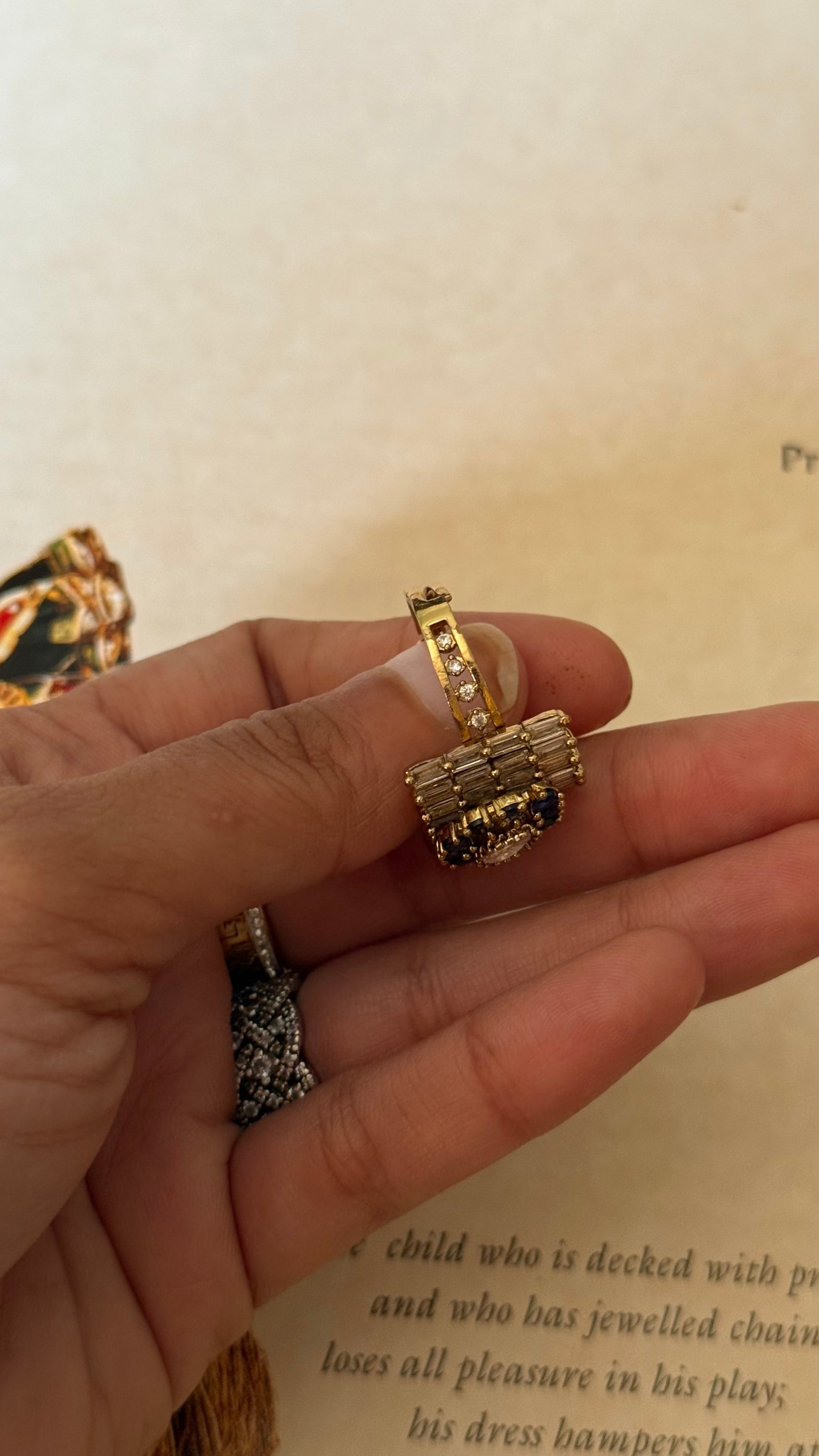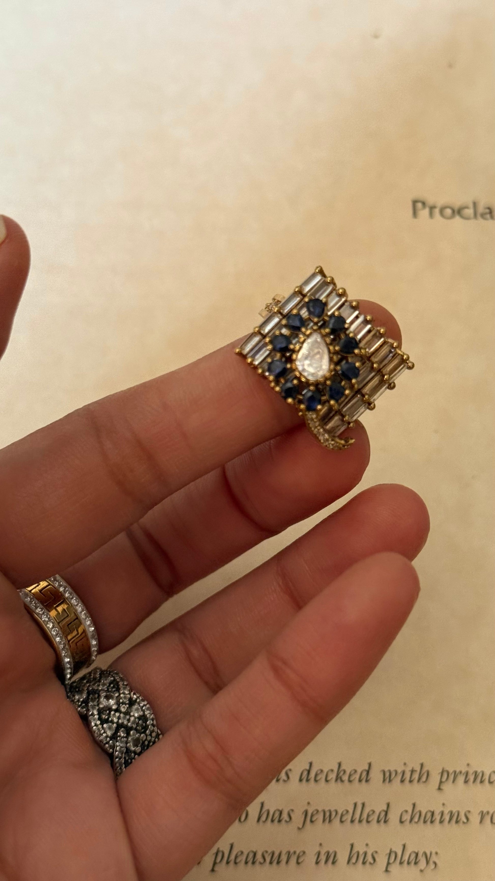 Sapphire moissanite uncut polki designer cocktail adjustable ring