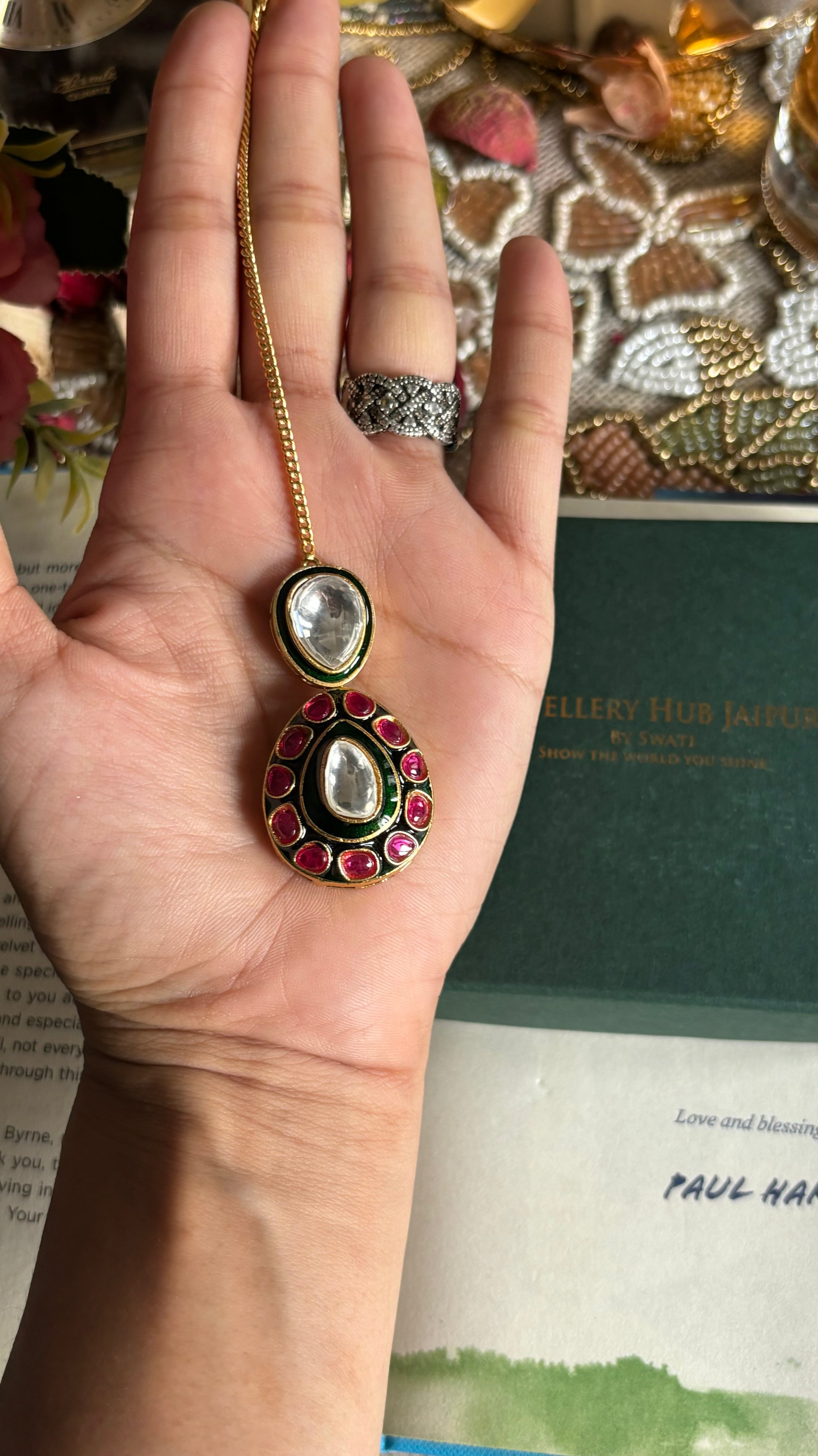 Uncut polki ruby meenakari maamgtika