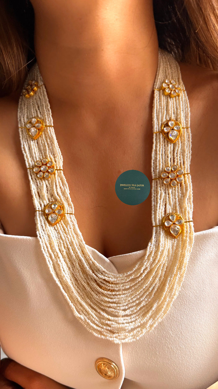 Real Moissanite White pearls multi layer with moissanite floral design long set