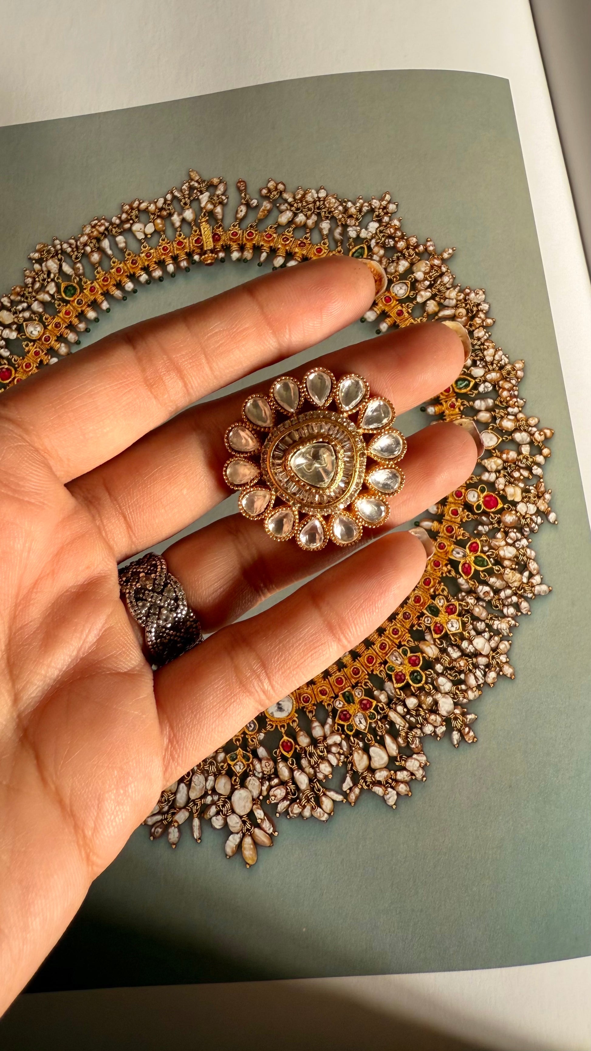 Moissanite polki adjustable ring