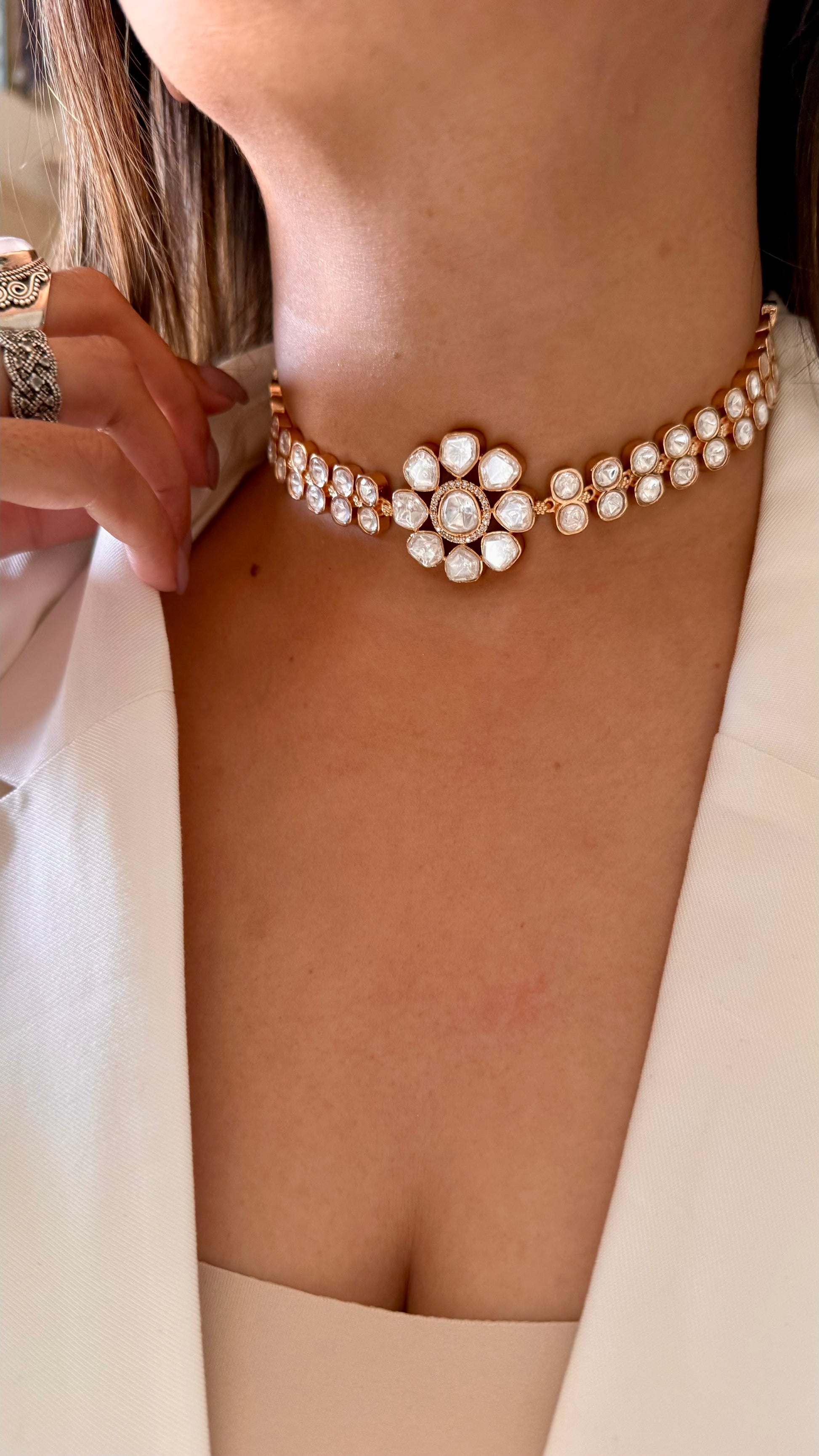 Sitara Moissanite polki heritage minimal necklace with earrings